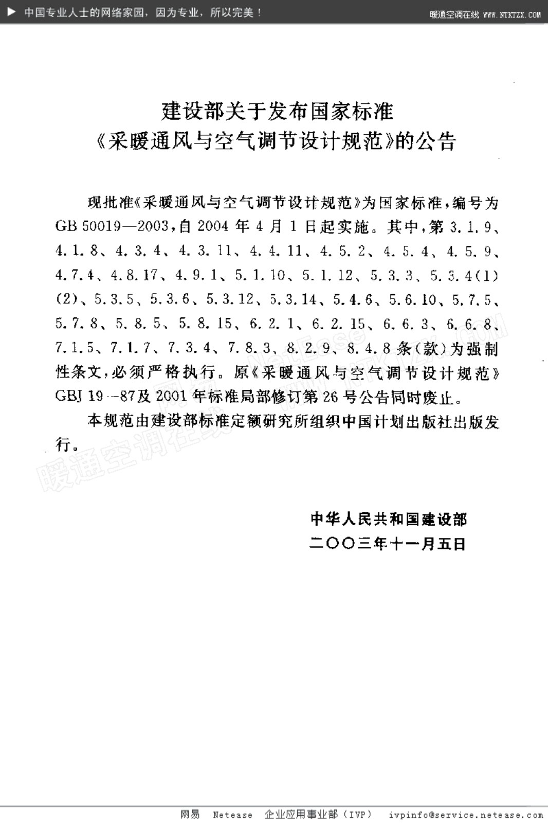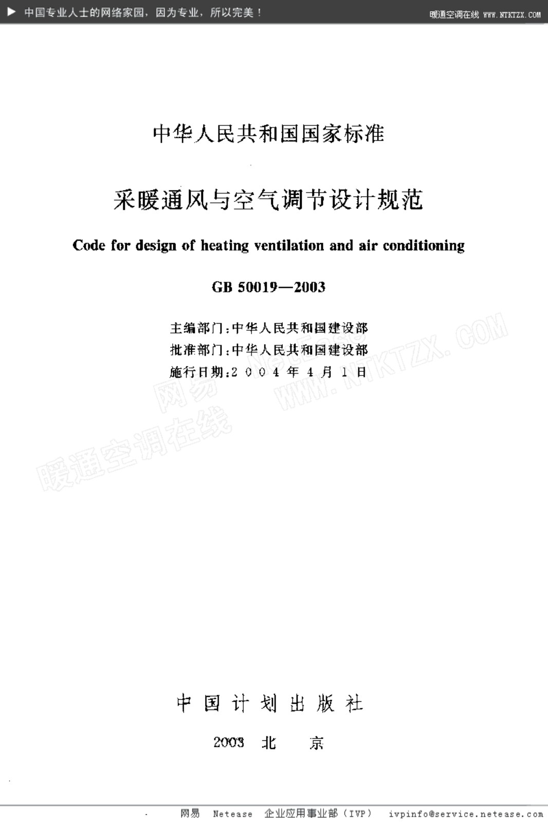 行业标准采暖通风与空气调节设计规范