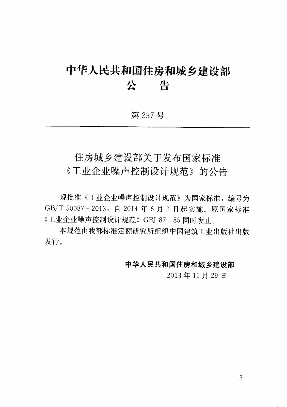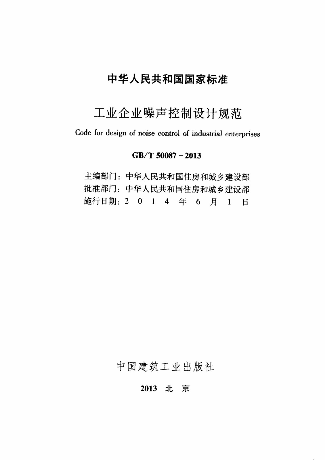 GBT50087-2013工业企业噪声控制设计规范