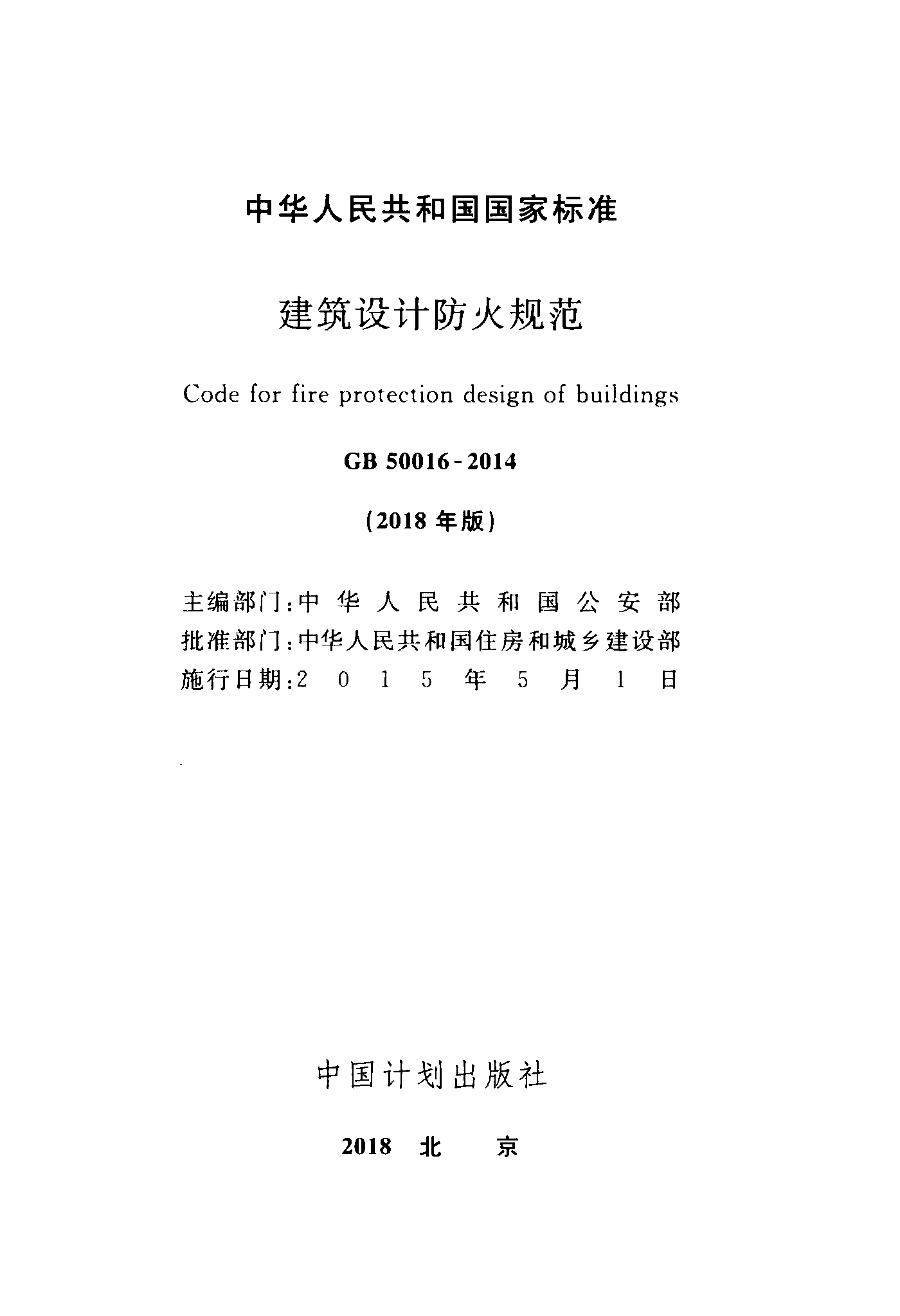 GB 50016-2018年版 建筑设计防火规范